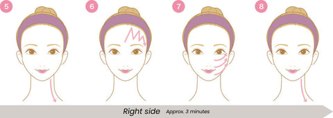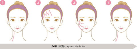 Power on and glide the device in upward motions from jawline to forehead (8 sections)